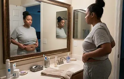If you can pinch excess skin or notice sagging when seated, a tummy tuck is likely needed.